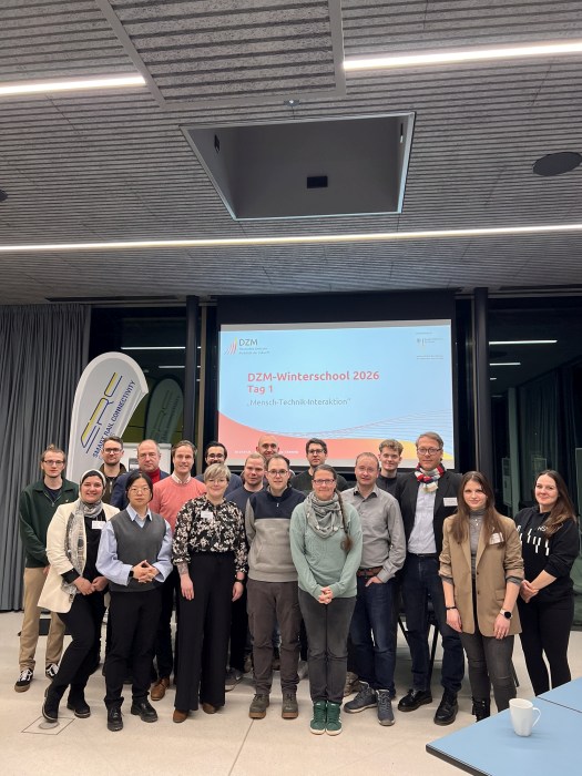 Vom 19. bis 21.01.2026 trafen sich am DZM-Standort des Smart Rail Connectivity Campus 18 Promovierende bzw. Post-Docs sowie zusätzlich weitere Vertreter der vier Standorte des Deutschen Zentrums Mobilität der Zukunft (DZM) zur zweiten DZM-Winterschool, die diesmal unter dem thematischen Schwerpunkt der „Mensch-Technik-Interaktion“ stand. Dieses Themenfeld beschäftigt die Forschenden aller vier Standorte in ihren Projekten ganz maßgeblich und wie die Diskussionen auf der Veranstaltung zeigten, existieren hier forschungsseitig bisher noch nicht abschließend gelöste Herausforderungen – unter anderem für das Automatisierte Fahren auf der Straße und der Schiene. Ein großer Vorteil des DZM-Netzwerks ist, dass diese Herausforderungen durch einen gemeinsamen Austausch standortübergreifend leichter bewältigt werden können. Ganz konkret zeigte sich dies während der Winterschool durch die unterschiedlichen Betrachtungswinkel auf die gleichen Kernfragen der Mensch-Technik-Interaktion aus den Perspektiven verschiedener Disziplinen und Kompetenzschwerpunkte der Forscher aus Annaberg-Buchholz, Hamburg, Karlsruhe und Minden.
