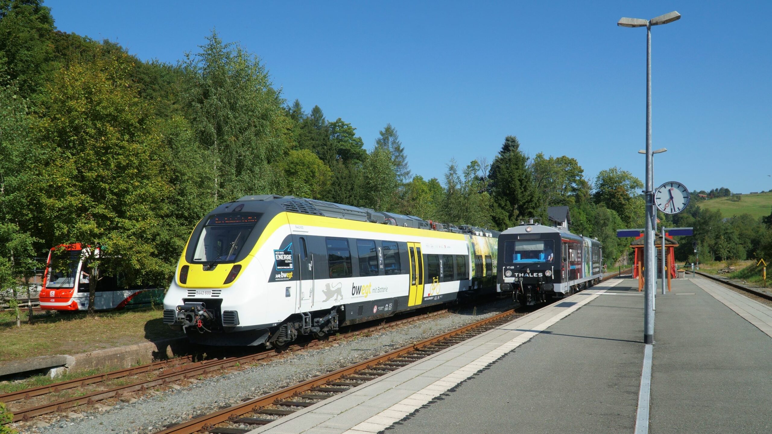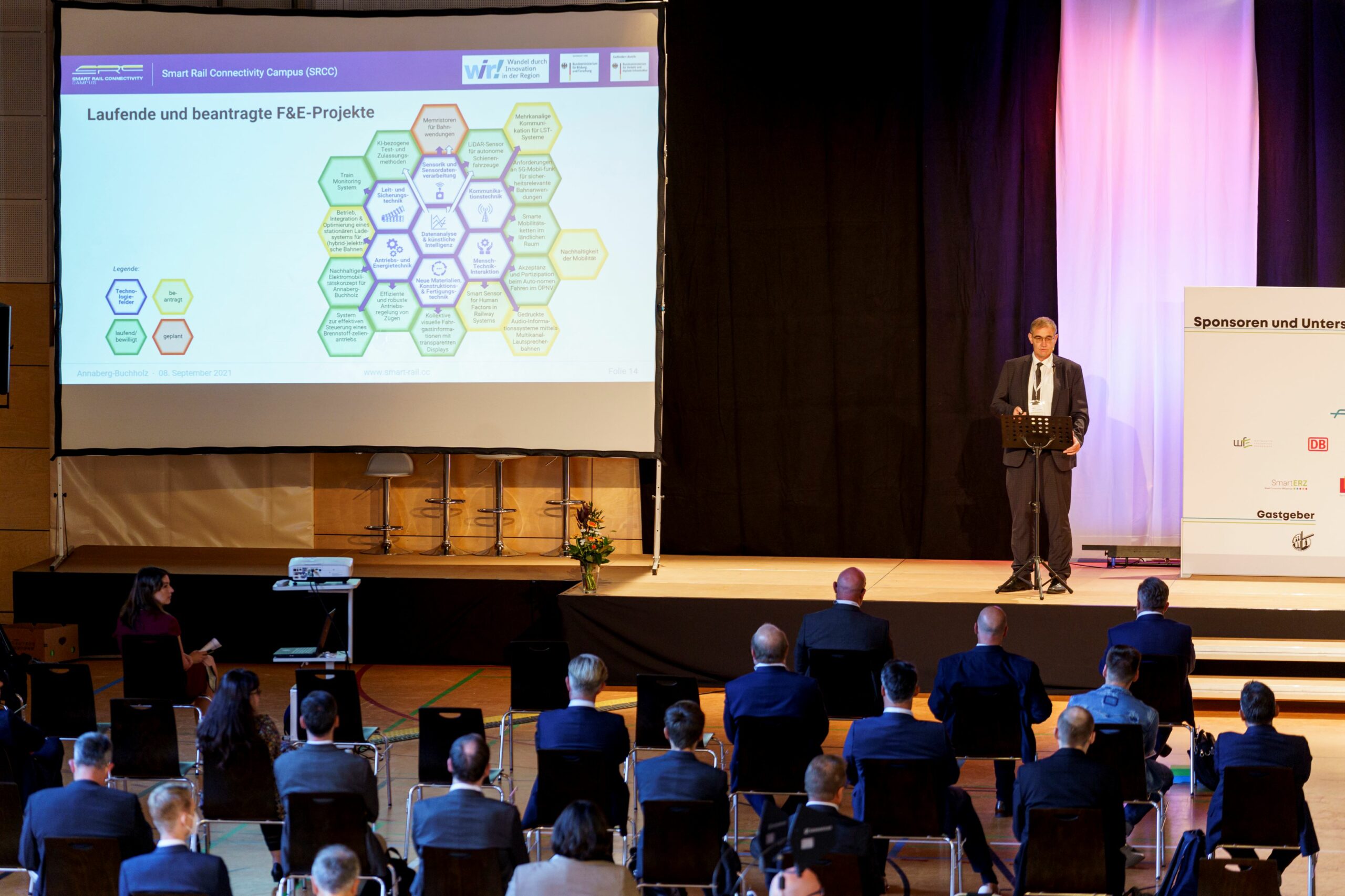 Annaberg-Buchholz – In der Großen Kreisstadt im Erzgebirge wurde in den vergangenen Tagen einmal mehr die Tradition der Zukunftsentwicklung gepflegt: Das hat die diesjährige Digital Rail Convention 2021 des Smart Rail Connectivity Campus (SRCC) gezeigt. Erneut fand diese international ausgerichtete Konferenz, diesmal vom 07. September bis 10. September 2021, im Evangelischen Schulzentrum sowie am Bahnhof Süd und Scheibenberg statt. Zum Auftakt wurde jedoch der erste für den Personenverkehr zugelassene batterieelektrische Zug vorgestellt. Auf einer Premierenfahrt von Chemnitz nach Zschopau und zurück wurde demonstriert, wie emissionsneutrale Schienenfahrzeuge die Energiewende mitgestalten können. Der vom Alstom-Konzern entwickelte Zug soll bestehende Dieselflotten auf nichtelektrifizierten Bahnstrecken ablösen und dazu beitragen, die CO2-Emmissionen im Verkehrssektor wesentlich zu reduzieren.