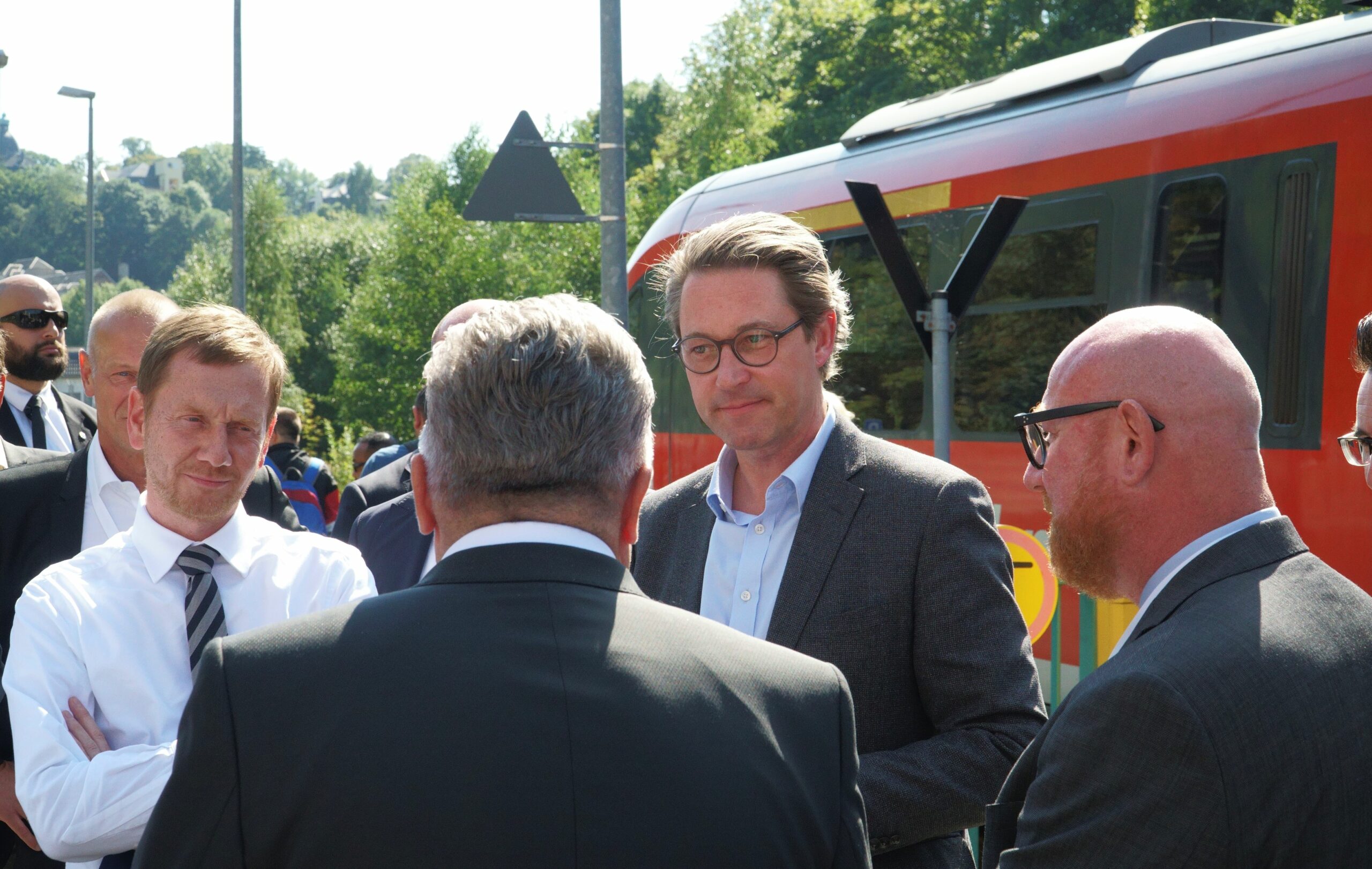 Höhepunkt der diesjährigen Veranstaltungsreihe war am Donnerstag, 09. September, der Besuch von Bundesverkehrsminister Andreas Scheuer, welcher sich als Schirmherr des DZM vom aktuellen Forschungsstand des Campus SRCC selbst überzeugen wollte.  Mit ihm zusammen besuchte der Ministerpräsident des Freistaates Sachsen, Michael Kretschmer, den Unteren Bahnhof in Annaberg-Buchholz, wo der Forschungscampus für Forschung, Entwicklung und Erprobung neuer Innovationen im Schienenverkehr entsteht. Im Anschluss besuchten beide Politiker, anlässlich des gleichzeitig stattfindenden DemoDays, am Bahnhof Süd die Ausstellungstände von Partnern des SRCC und informierten sich über deren Entwicklungen. Abschließend nutzte der Bundesverkehrsminister die Gelegenheit zu einer Fahrt mit dem ersten batterieelektrischen Zug, auf der Strecke von Annaberg-Buchholz nach Cranzahl und konnte so, als zuständiger Fachminister, die neueste Entwicklung alternativer Antriebstechnologien im Schienenverkehr erleben.